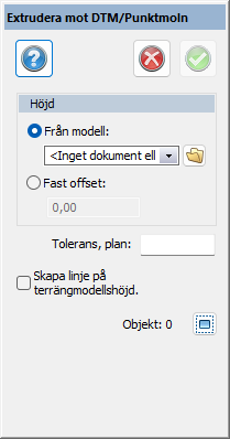 - Höjd, Från modell. Välj terrängmodell eller punktmoln som höjden ska hämtas från.