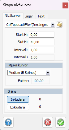- Aktivera kommandot Skapa nivåkurvor genom att gå till Terräng|Skapa nivåkurvor