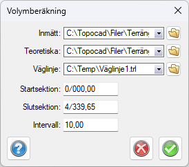 Ange den inmätta modellen alternativt jordmodellen eller någon av de två modellerna du vill beräkna volym emellan. Denna modell kommer att redovisas med grön färg.