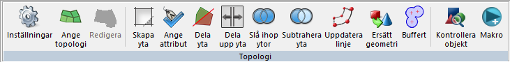Topologi ingår i Topocads basmodul och är speciellt framtagen för att kunna hantera topologier i kartor. Funktionerna kan även användas för annat bruk.