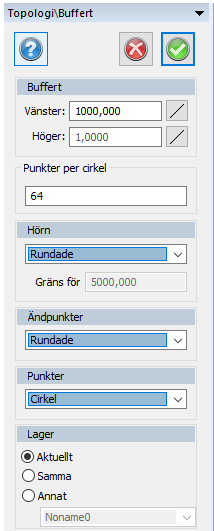 Ställ in om punkter ska ha en cirkular alternativt kvadratisk buffertzon.