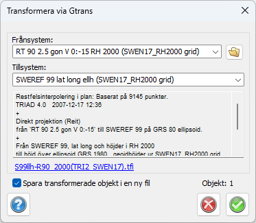 - Ange om transformationen ska resultera i en ny fil (rekommenderas).