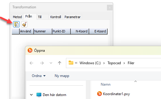 Det är möjligt att hämta punkter/koordinater från koordinatfiler. Genom att klicka i Från- respektive Till-flikarna knappen för att hämta filer så kan du välja olika filer för detta.
