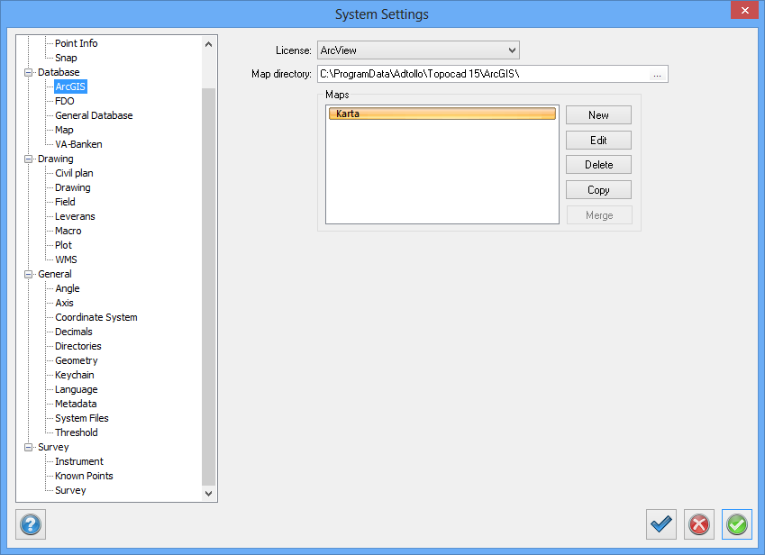 Connection to ArcSDE is an add-on module for storage and for loading from the ArcGIS database. Data can be stored either in the ArcSDE database or in a personal geo data base. Settings created here are for the database and creation of maps.
