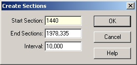 Enter the start and end sections and the required interval between them. Further sections can be created as required. To create only one section, enter the same start and end sections (or a larger interval than the distance between the start and end sections).