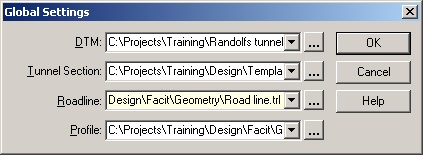 When a new calculated tunnel section is created the global settings are displayed.