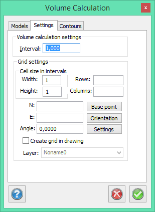 The accuracy of the calculation. The interval used to calculate the areas and volumes. The default value is 0.25 m which means that every m² is calculated using 16 points or distances. Reducing this value will slow down the calculation but produce a more accurate result.