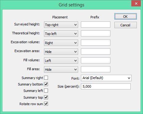 To place the values in the grid in the drawing, select from the options under Placement. To hide the values select Hide.