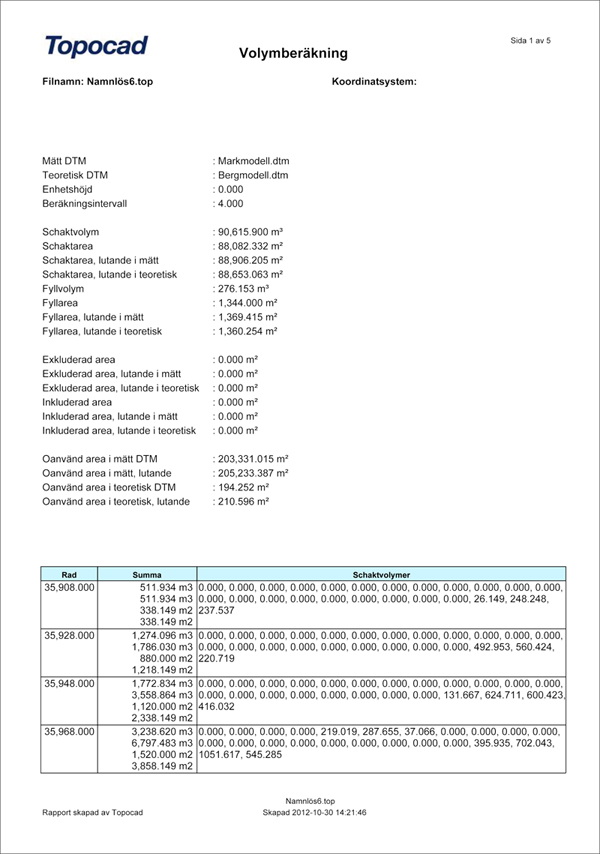 Report of volume calculation
