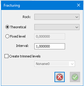 Fracturing is used to slice up a volume between two models or a model and a fixed level into many volumes. This is used most commonly to report rock excavation where you don't do the whole volume in one go with explosives but a more careful method where you want to show each layer of work.