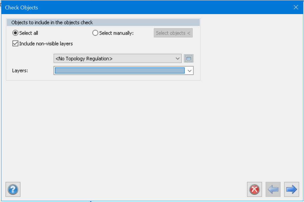 - First you decide which objects you want to check, all or manual selection with the radio buttons on the top.