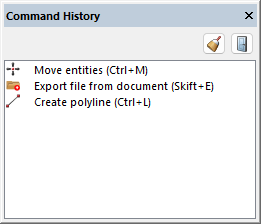 Get started Command history Command history Drawing | Misc | Command history Here the command history is displayed. Click on any command to open the current dialog. Copyright © 2025 by Adtollo AB.