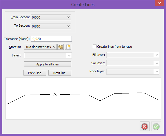 This command is similar as the above one but you can create all lines in the section to a plan drawing at the same time. The figure shows your cross section, click on each point and decide which layer the line shall end up in.