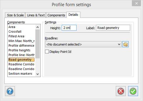 Enter the height for this block and selected the desired calculated roadline, extension .trl. You should also enter the label for the block - this could be Road geometry, Roadline data, Plane data etc...