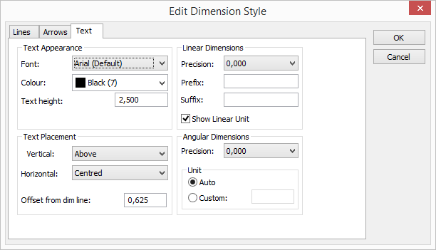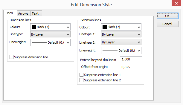 Select the length for the extension lines. This is used when the text is beyond the arrows and there is no space in between.