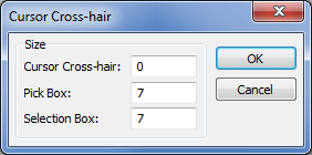 Set size for Cross hair, pick box and selection box. Default is 0,7,7.