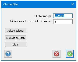 This filter works as a noise filter removing points that has a lower point count within the set cluster radius.