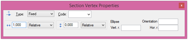 Enter a vertical and horizontal distance and select whether you want these distances to be calculated from the last point, from the centre point or whether they are absolute distances. (Offsets/Heights)