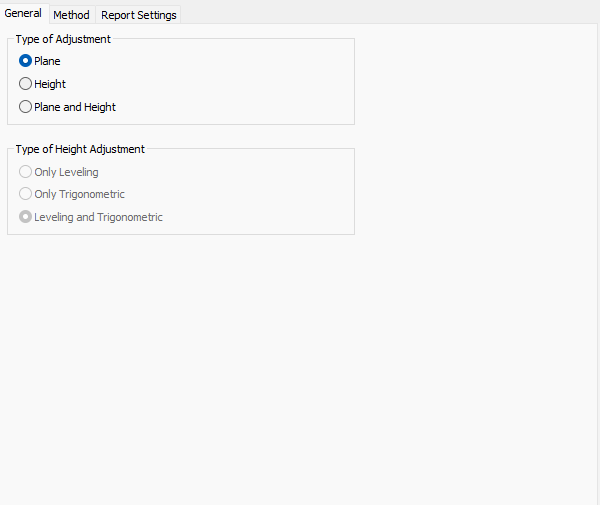 - Only leveling (only levelled survey data is included in the height adjustment)
