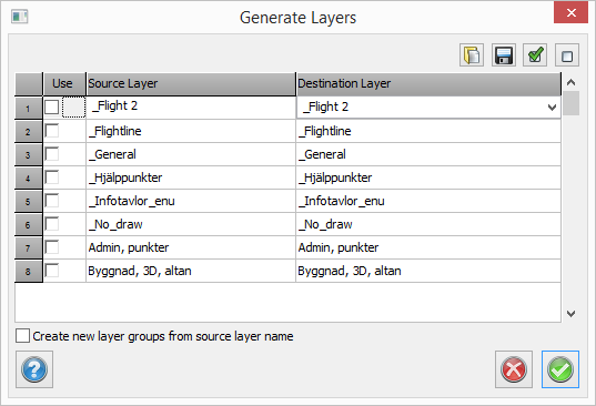 The function Generate layers imports all layers from the drawing. Select attributes to the destination layer.