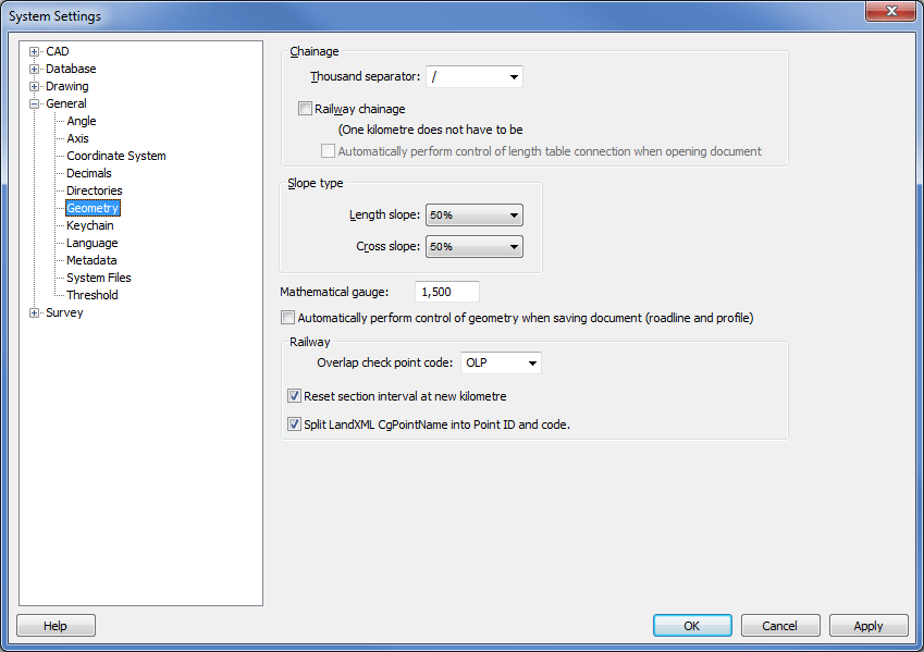Railway chainage: Mark if you use railway chainage. One kilometre is not always 1000 meters, it can be shorter or longer.