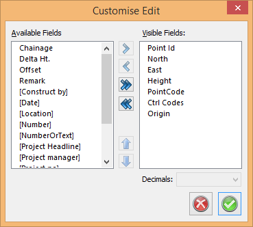 Select the fields you want to be visible, and how many decimal you want in each field.