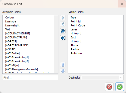 Right-click on the table and select Column Settings to edit your table. Choose which fields should be active, and how many decimal places should be displayed in each field.
