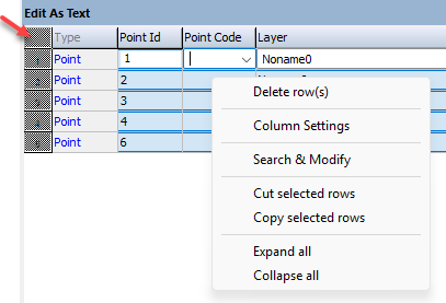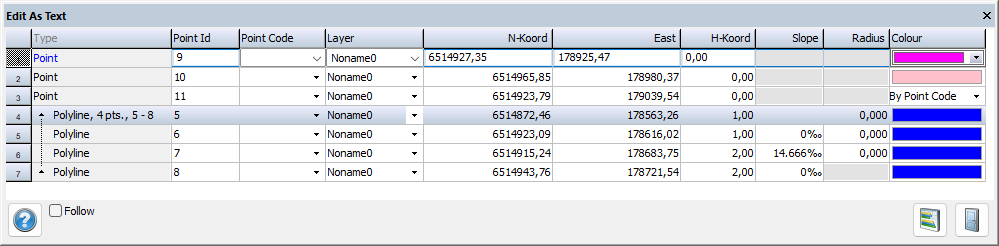 Click on Point ID or another header to sort by it. Note! Grouped polylines disappear when sorting.