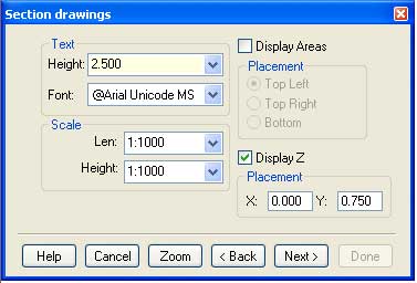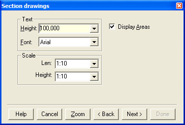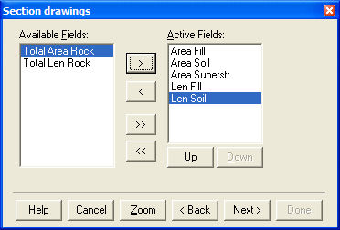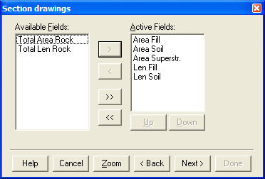 This window is only used if you are using areas. All areas used in the cross sections will be available, including those fields you created yourself.