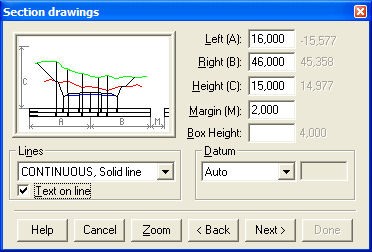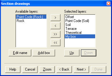 Select the layers (forms) that you want to use for each cross section. The name can be edited when they are on the left-hand side. You can add boxes that will be empty. The information to be added here is the height of each break point in the selected layer.