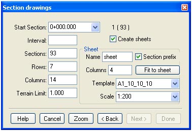 If the Section prefix is checked, a start and an end cross section will be added as a prefix to the name. If the selected template has more than one view only the first view will be used.