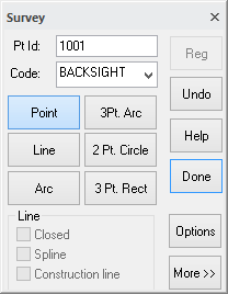 Function for measurement. Register for line or point. Set point ID, prism height and code.