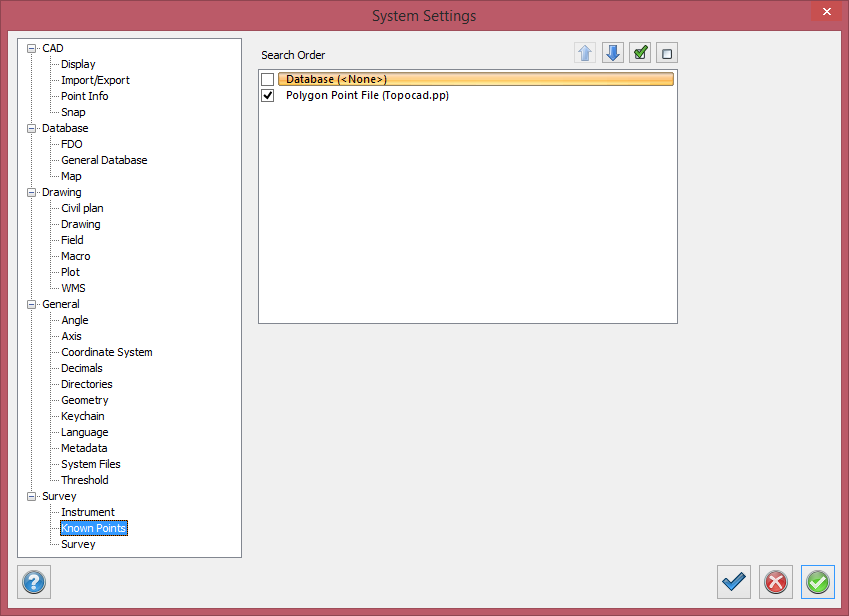 Settings for which file or database known points shall be collected from.