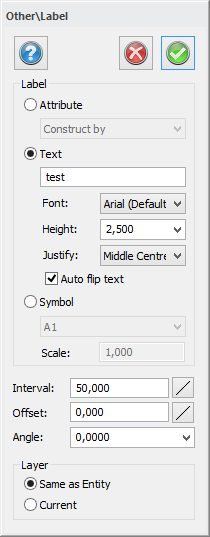 Function to label objects. Insert a text, symbol or an attribute of a line, etc...