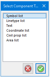 Placement and size of the explanation types in at the upper left in the dialogue. To the left you find a list over detailed components. At first the list is empty, use the buttons to the right to add/ delete/ move components.