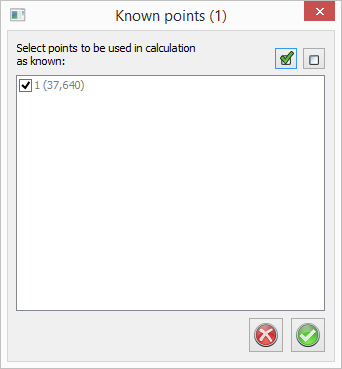 Known points that was found. The user can select which points that shall be used in calculation.