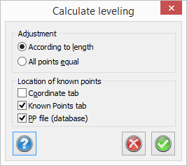 Adjustment can be made with or without weighting and where the software system shall look for known points can be decided. The priority order is coordinate tab and then PP file (also database).