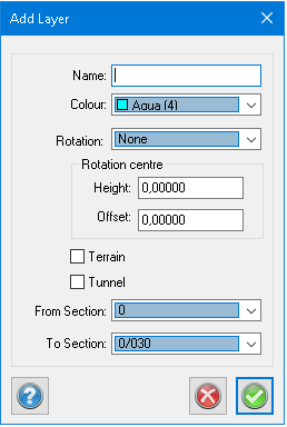 Edit the layers in the cross sections. You can add, delete, rename and move them up and down. The layers are defined between the terrace and finished upper surface.