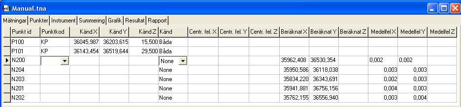 Entry data is based on a purge having been made to Topocad's survey data file using the SUR file format, and this data is then imported to the net adjustment; but entering data directly to the net adjustment measurements works equally well.