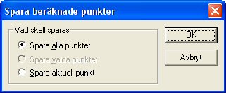 You can select between saving all new points, the current point you have selected or a range of points. If you want to save points in a new file, you create a new polygon point file via New|Polygon points and then connect it to the project via Settings|System settings|Observation whereupon you select the new file. Finish by saving the points as per the description above.