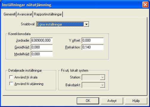 Use free adjustment- adjusts the net without taking fixed known coordinates into consideration. Good for nets that need to be free from tension. See Free adjustment under Netadj.|Settings Speed settings. As free adjustment here occurs under the Own settings speed setting, the ellipsoid and projection correction will be carried out for a certain observation if you have specified the observation's row in the survey data tab.