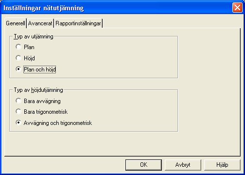 You can make several speed settings under Net adj.|Settings in the main menu. These settings do not affect the survey data/measurements but only give the program instructions on how to calculate. This means that even though plane and height are to be calculated for a measurement, the speed setting is to be set to plane alone.
