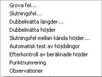 For plane adjustment a calculation is made of how much you need to adjust the approximate values of the point coordinates in order for the improved observations to correspond with them. If you have major errors in the net, the approximate values will be unsatisfactory and the results will not be correct. You then use the calculated coordinates as approximate values and readjust. The procedure continues until the observations agree with the points, and the number of calculations are specified as the number of iterations. 1-3 are normal values here, and the program has a maximum limit of 20 iterations to enable it to carry out an adjustment. This is due to the fact that if the observations are unsatisfactory enough, you will get values that are progressively worse for each calculation and thereby never arrive at a result. |