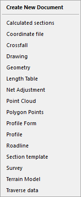 A survey data document contains all of the survey data. This file type can be used to import files from different overall stations and to edit new survey data. When calculating survey data for co-ordinates, a drawing document will be needed and this can be created from the survey document.