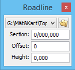 This dialogue box is used to view different sections and offsets from the roadline. Select roadline in the scroll-down menu. If there is no current roadline open or available, click the Browse button to add your roadline.