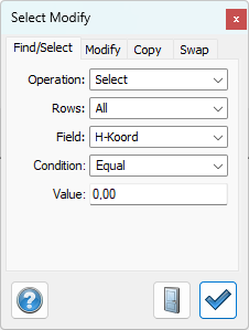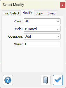 Under the Modify tab, edits can be made in connection with the search, such as Insert before, Insert after, Remove text, Replace text, Renumber up or down, Uppercase, Lowercase, and more. This depends on the data type.