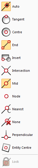 Locks the snap until another snap command is selected. Be aware that the snap feature may be locked for some commands where snap commands are not available. For example if you are using the Offset command and need to click on one side.