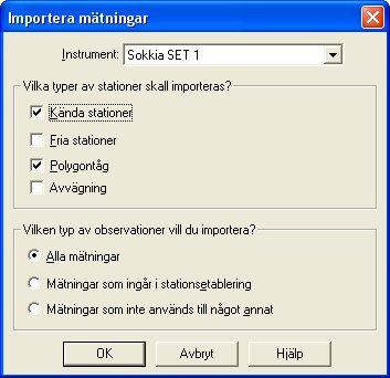 - Select the stations and the type of data for import. See below.