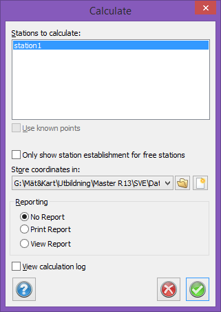 - The dialogue box that opens indicates how many stations there are in the survey. All of them are selected. If you want to exclude one or more of the stations from the calculation, select the ones that should be calculated. Use Ctrl to select one at a time or Shift to select several stations at once.