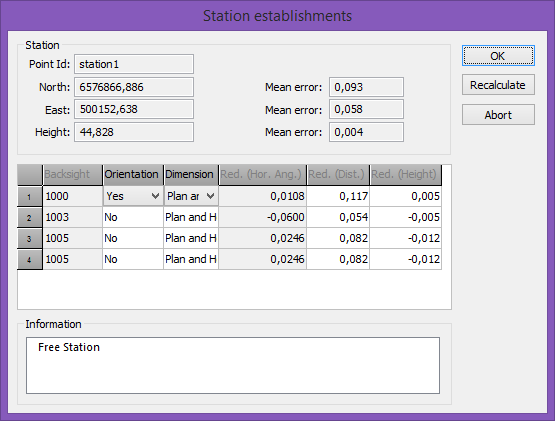 - The stations, including free stations, will appear one by one. See Free station for more information about free station calculation.